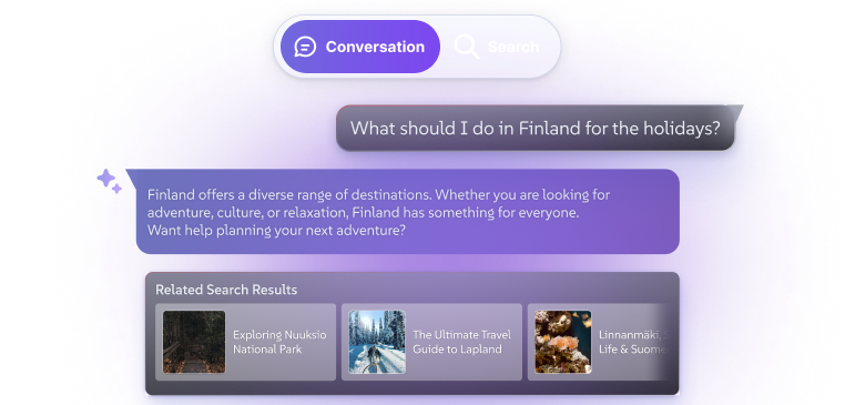 Combine keyword search, AI answers, and multi-step, context-aware conversations.