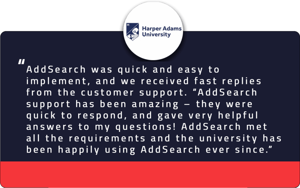 For instance, Harper Adams University experienced firsthand the ease of integrating AddSearch during their website launch. The process was straightforward, allowing them to focus on other crucial aspects of their launch without having to worry about the intricacies of implementing a new search solution.