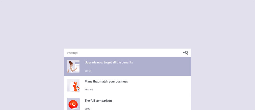Promotions always appear first amongst the search results. This way they make it more likely that your visitors will end up on the page that is crucial to your goals.