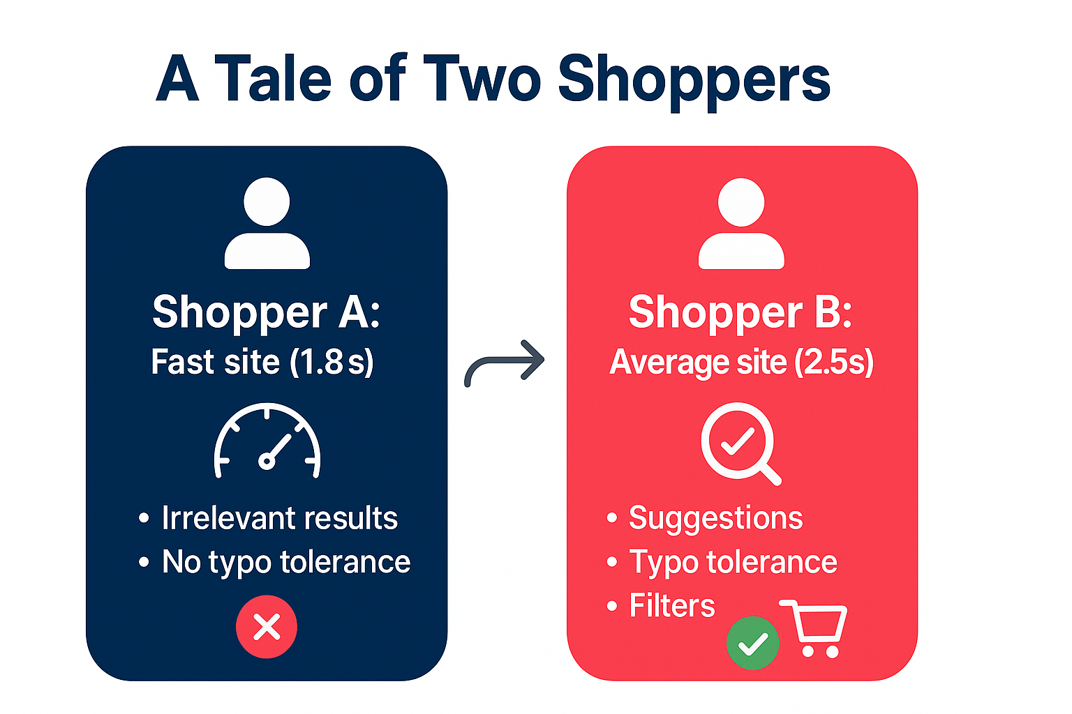 The difference? The second store invested in both speeds, understanding that product discovery directly impacts revenue.