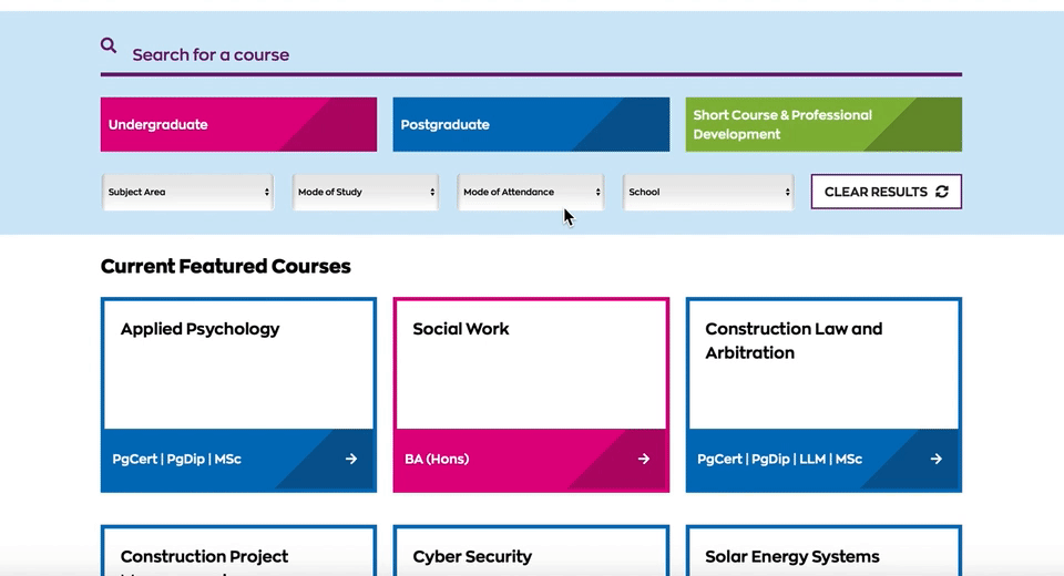 Considering the resources available, RGU knew that if they were to do it internally, the development project would take months—which is not ideal for an organization that relies on their website for new or repeat students. So, it was time to find a solution that covered these concerns and that would give their marketing team complete control over updates and improvements.