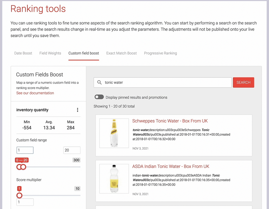 Do you want products to be shown above any other pages? You can adjust the ranking of certain site sections, such as path /products by boosting their weight with our tools. You can also exclude content or boost even certain file types such as PDF files if you want to.